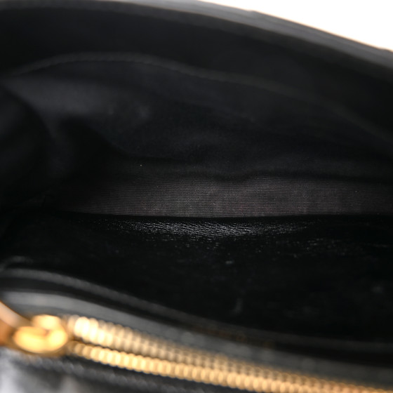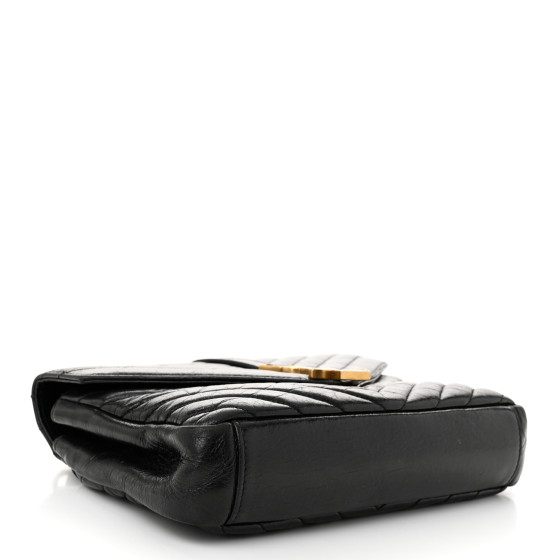 Cracked Shiny Calfskin Matelasse Chevron Monogram Medium College Bag Black