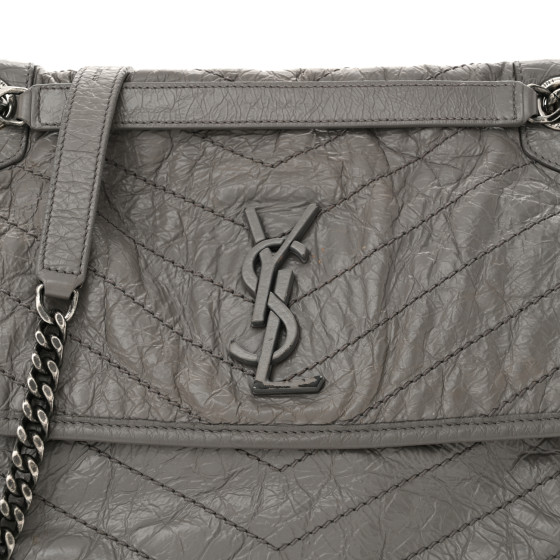 Crinkled Calfskin Matelasse Monogram Medium Niki Chain Satchel Fog