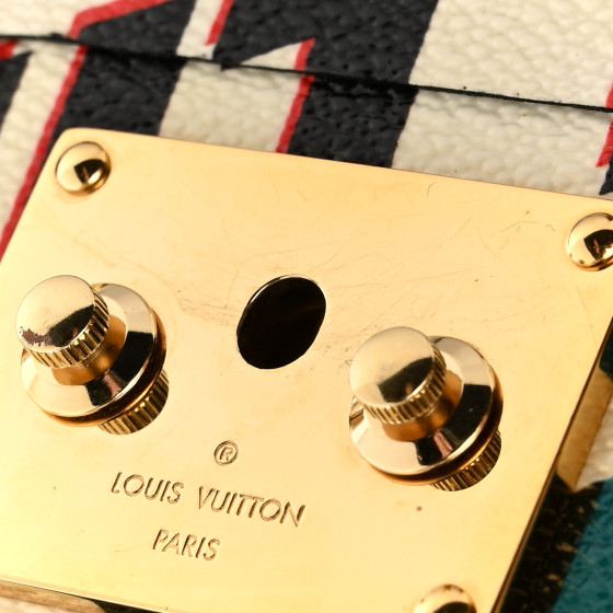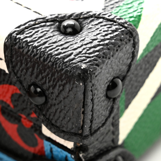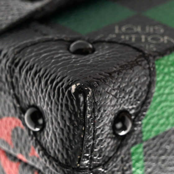 - Materials: Louis Vuitton monogram on toile canvas, with red and black leather accents