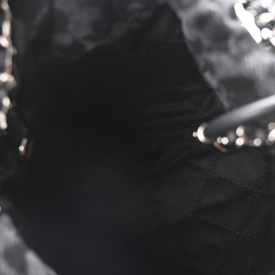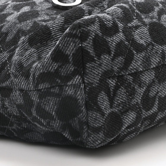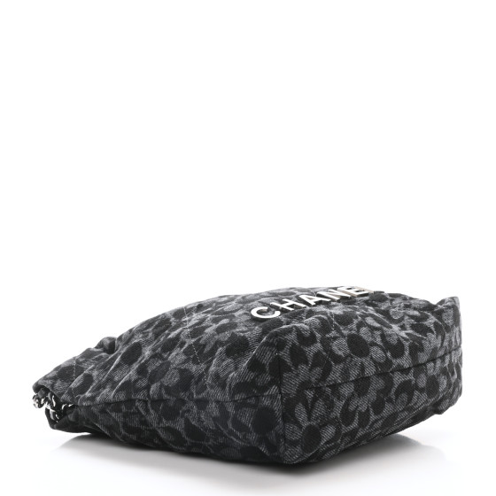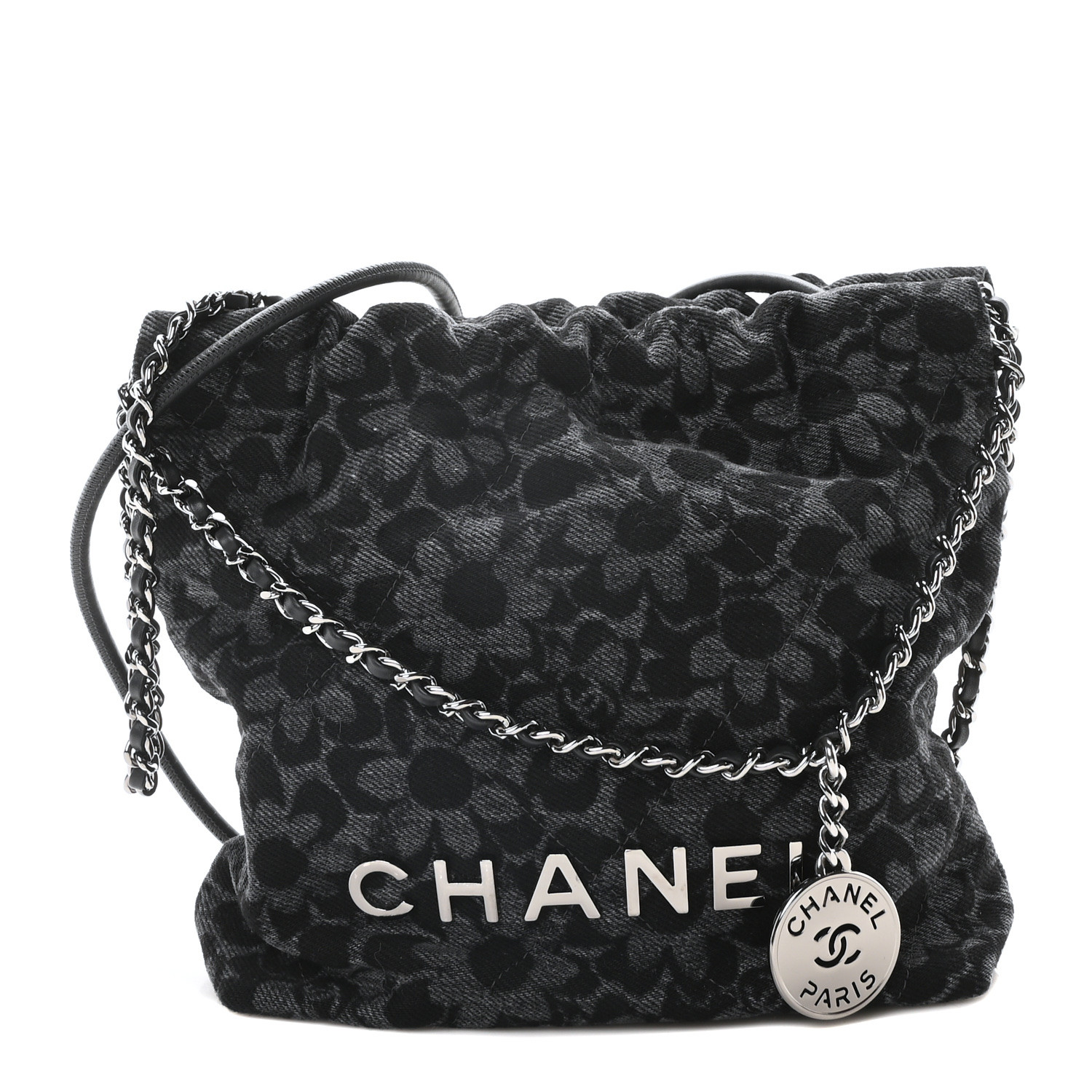 Denim Quilted Floral Print Mini Chanel 22 Black Grey