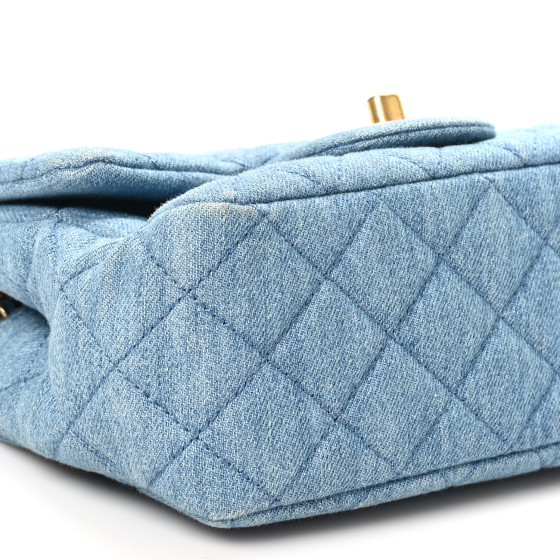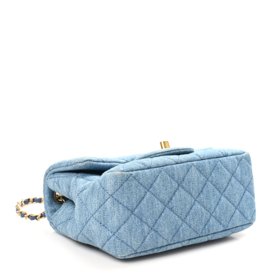 Denim Quilted Mini Pearl Crush Flap Blue