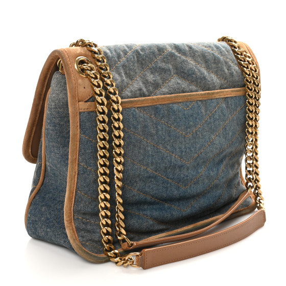 Denim Suede Monogram Medium Niki Chain Satchel Blue Cinnamon