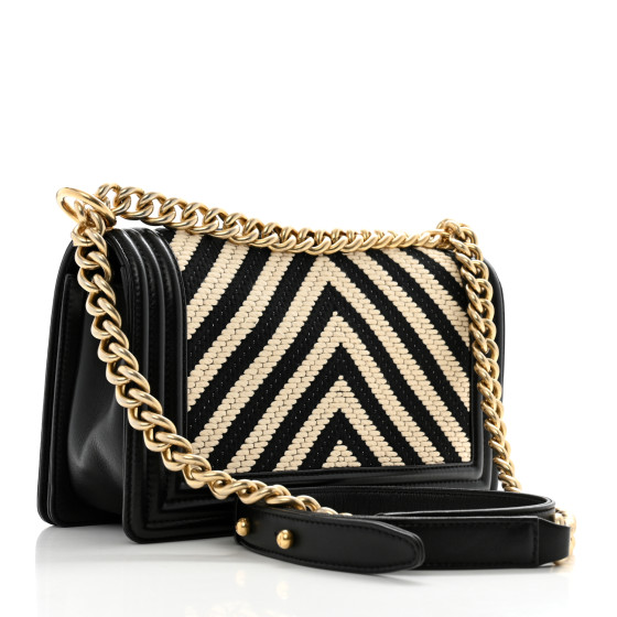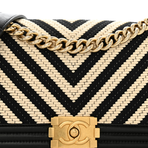 Fabric Chevron Braided Medium Boy Flap Black White