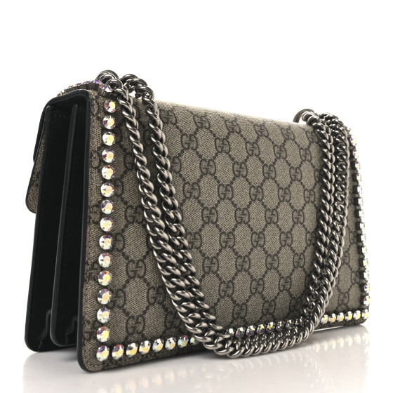 GG Supreme Monogram Crystal Small Dionysus Shoulder Bag Black
