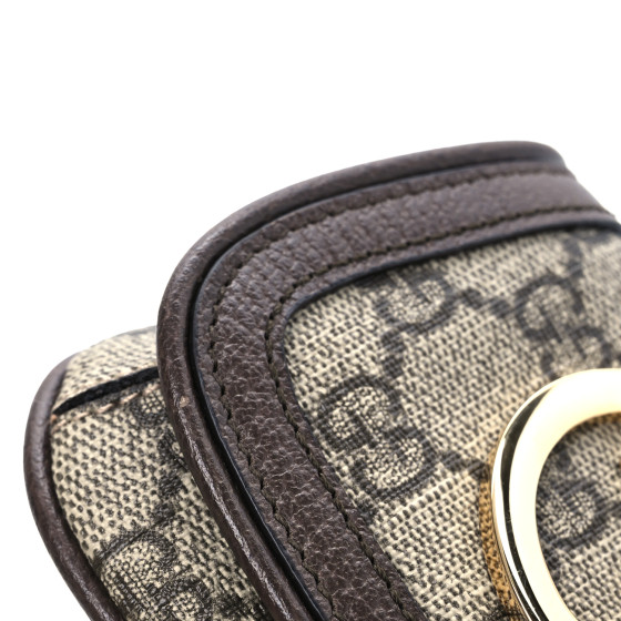 GG Supreme Monogram Textured Dollar Calfskin Blondie Card Case Wallet with Strap Beige Ebony New Acero