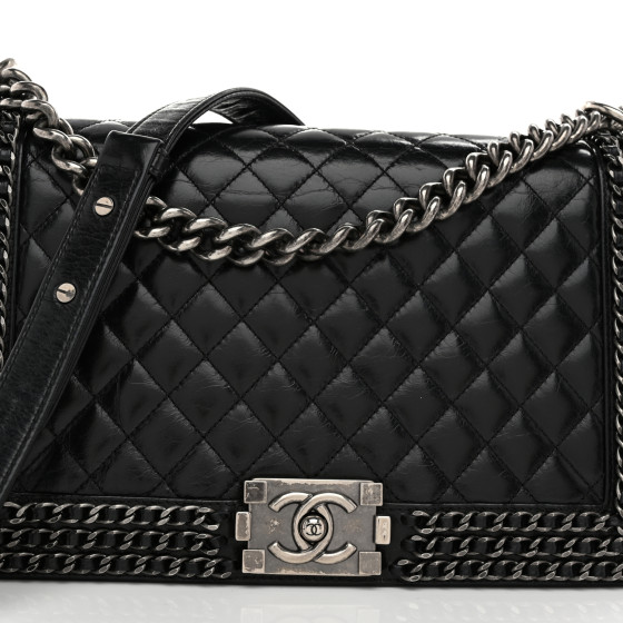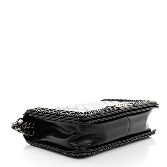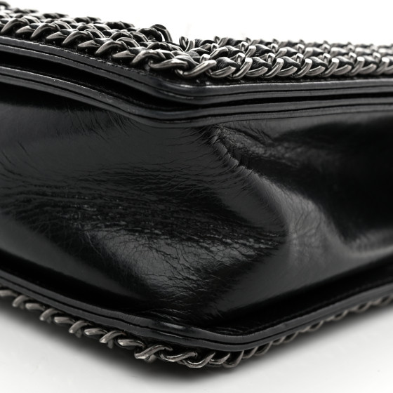 Glazed Calfskin Quilted New Medium Boy Chained Flap Black
