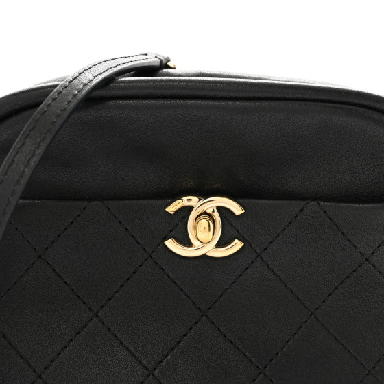 Goatskin Quilted Small Casual Trip Camera Case Black