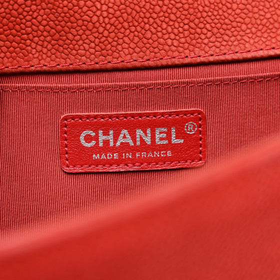 - Materials: Luxuriously textured diamond quilted caviar leather in red, with a linear quilted peripheral border