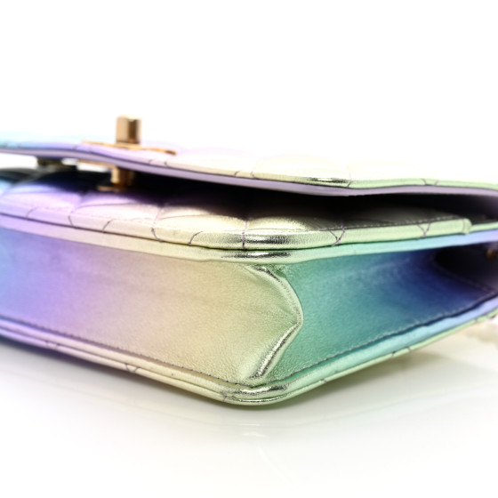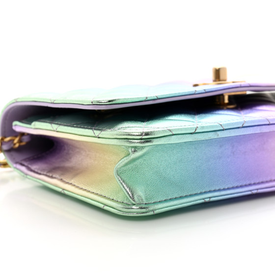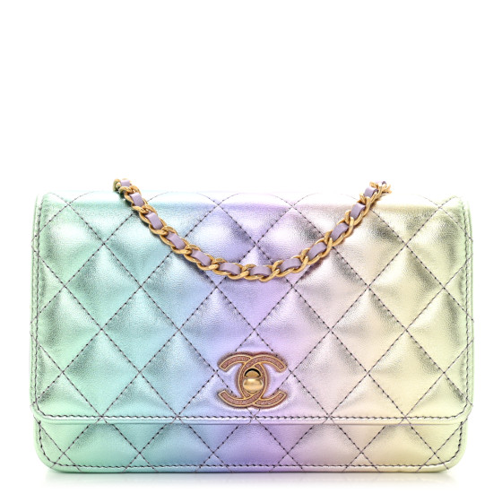 Iridescent Lambskin Quilted Glitter CC Roller Skate Wallet On Chain WOC Multicolor