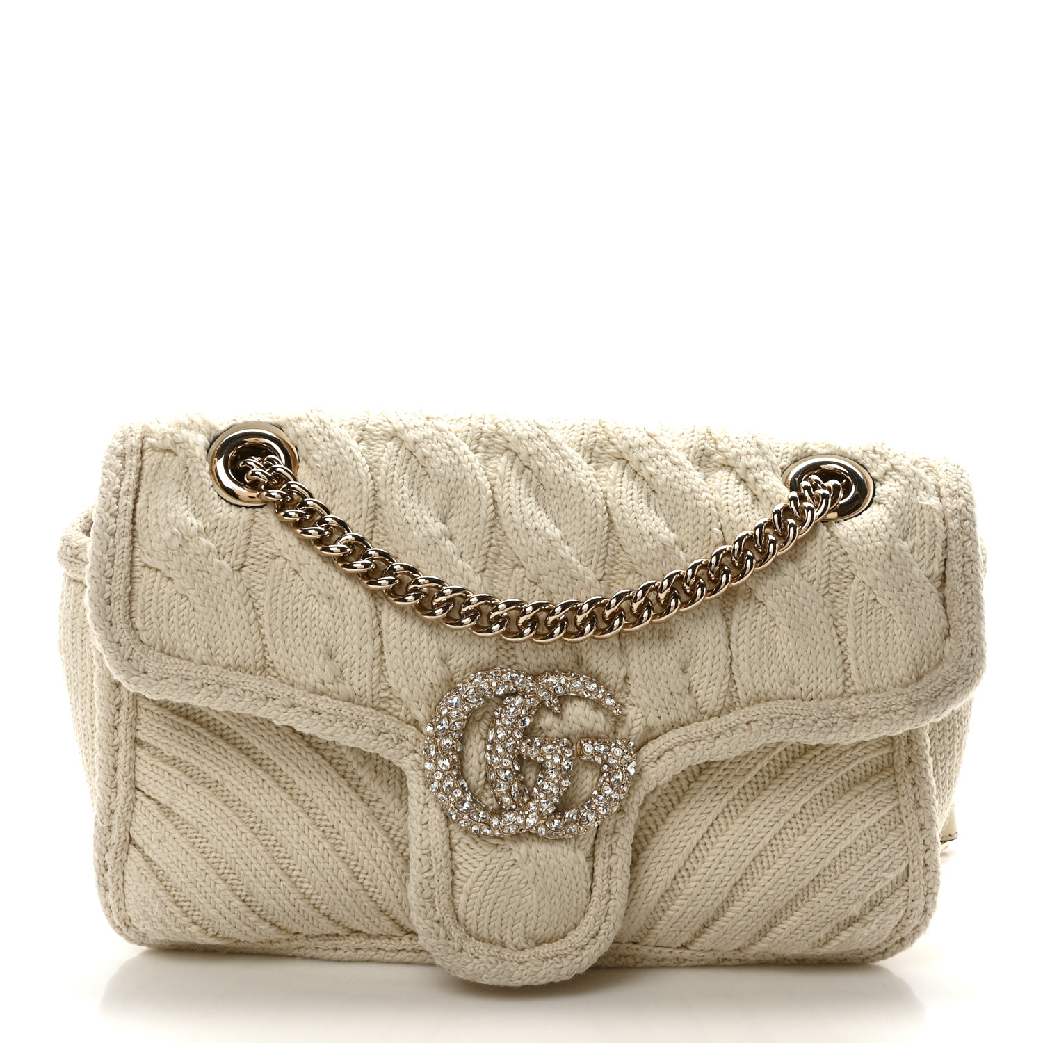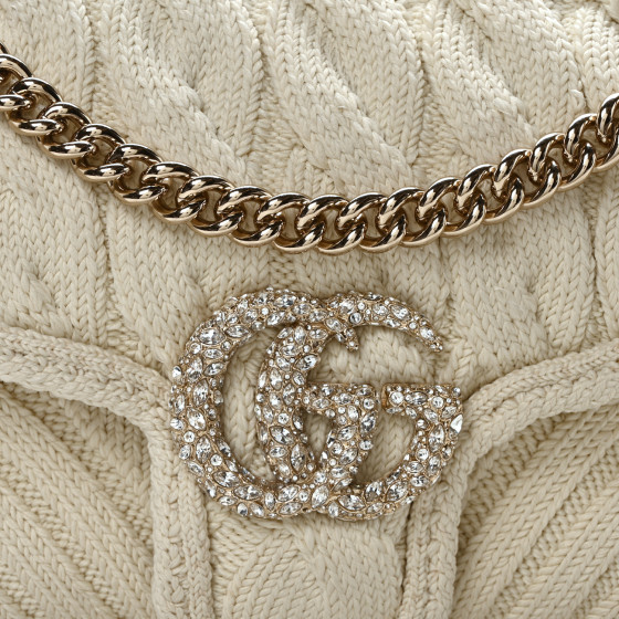 Knitted Wool Crystal Small GG Marmont Shoulder Bag Ivory