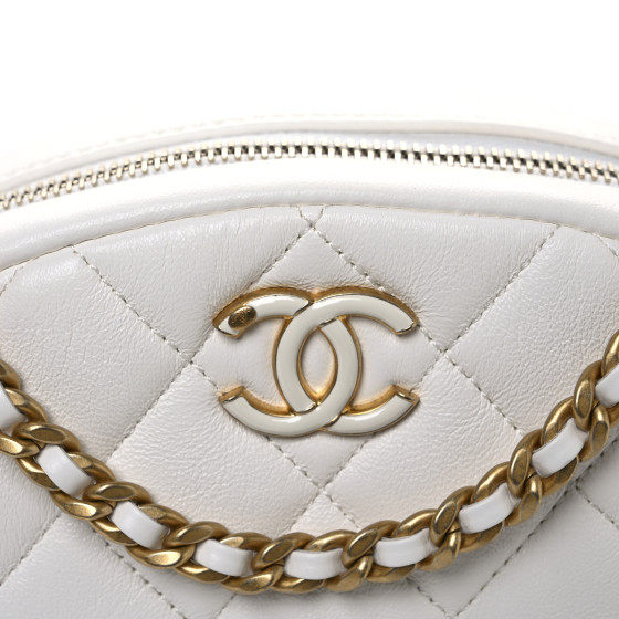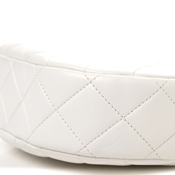 Lambskin Enamel Quilted Mini Clip Round Camera Case White