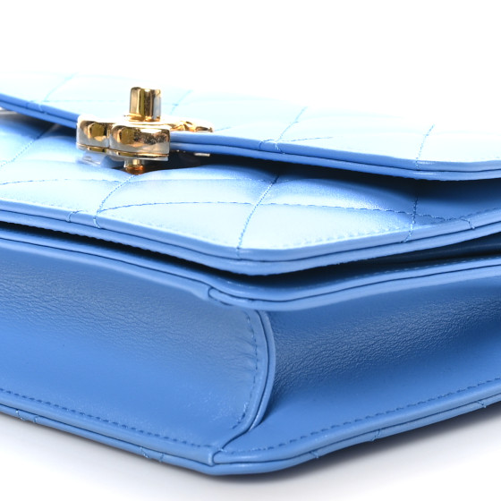Lambskin Quilted Chain Logo Top Handle Flap Blue