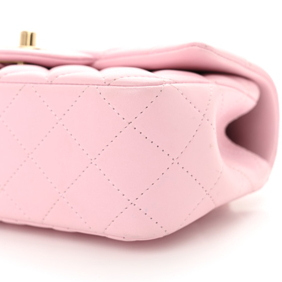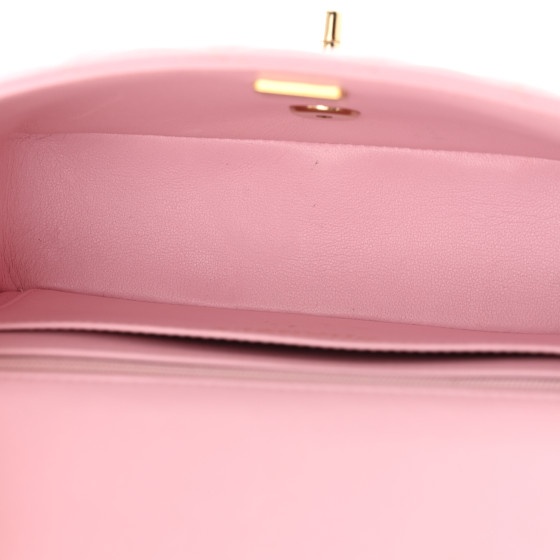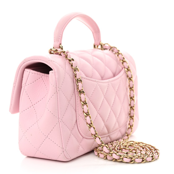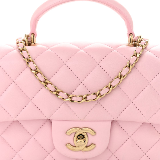 Lambskin Quilted Mini Top Handle Rectangular Flap Light Pink