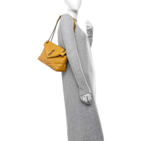 Lambskin Quilted Small Loulou Puffer Monogram Chain Satchel Saffran