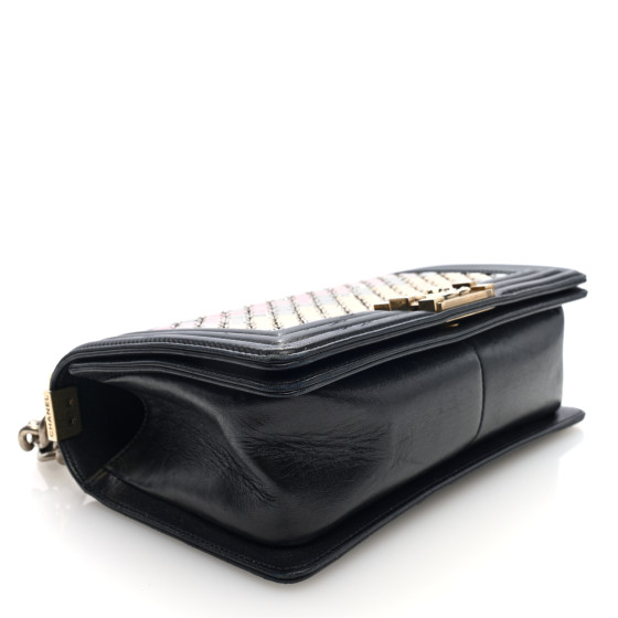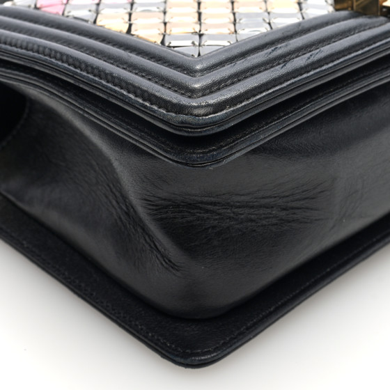 Lambskin Tile Embroidered Medium Brasserie Mosaic Boy Flap Black Multicolor