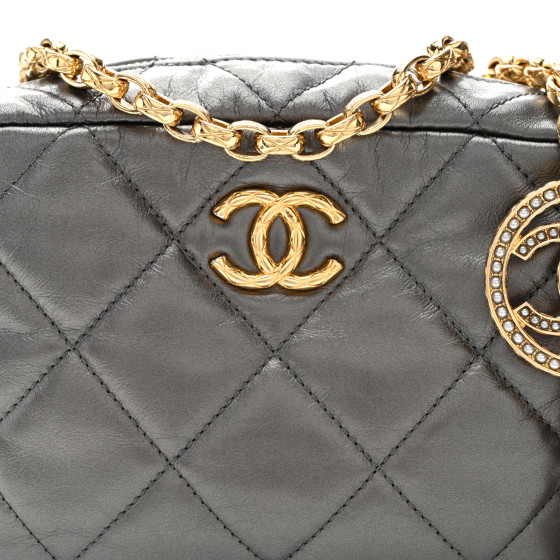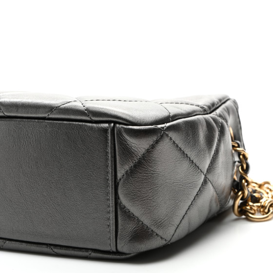 Metallic Calfskin Pearl Quilted CC Mini Camera Case Ruthenium