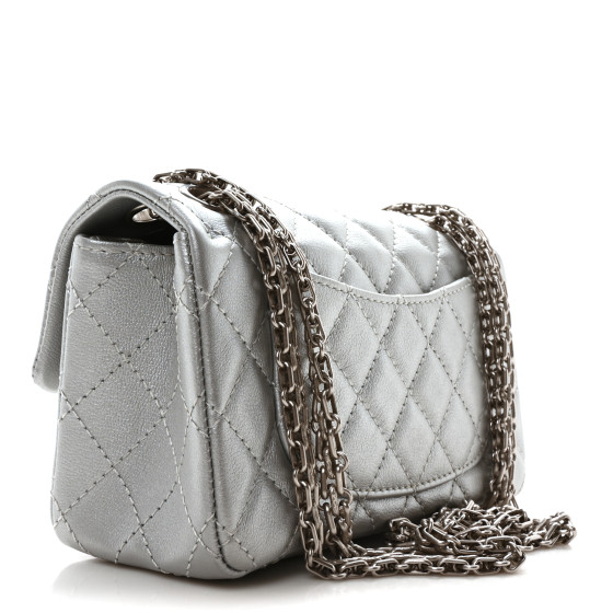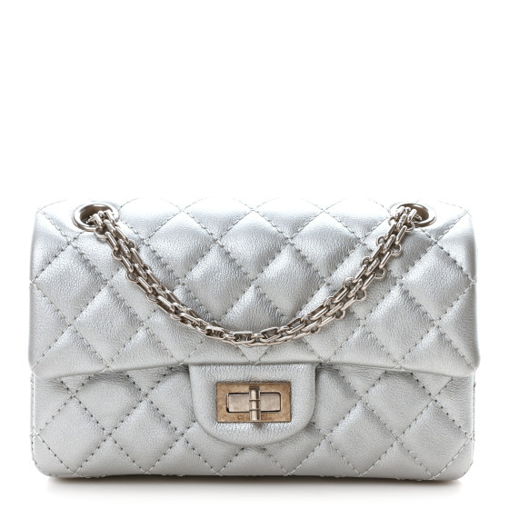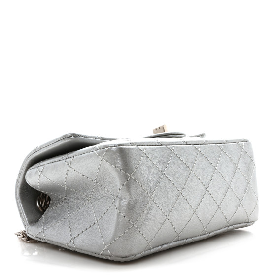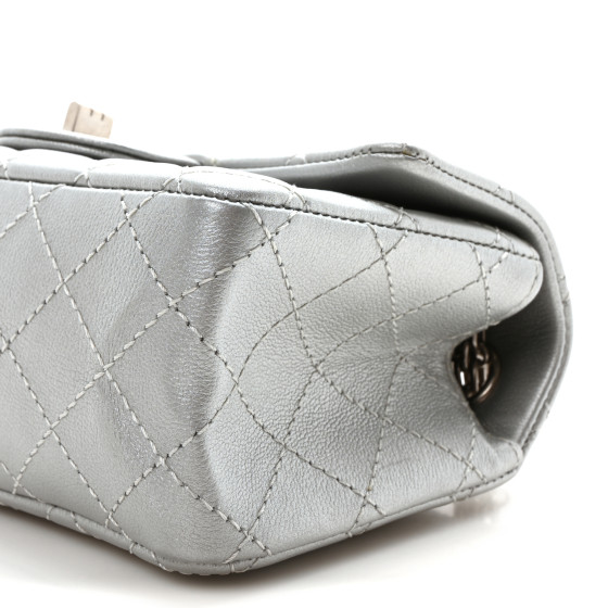 Metallic Grained Calfskin Quilted 2.55 Reissue Mini Flap Silver