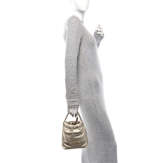 Metallic Lambskin Quilted Mini Chanel 22 Golden