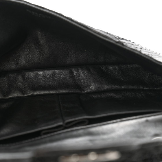 Inside, the Metallic Snakeskin Sequin Flap Black Replica features a soft textile lining with a flat zipped pocket to secure small valuables. A removable pouch doubles as a compact clutch or extra organizer. The open compartment provides flexible space for essentials, and side adjusters let you cinch the silhouette for a sleeker profile or loosen it for added room. Lightweight yet spacious, this piece fits your wallet, phone, keys, makeup case, a tablet or small laptop, and daily accessories with ease.