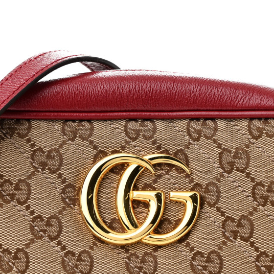 Monogram Azalea Calfskin Matelasse Diagonal Small GG Marmont Chain Shoulder Bag Beige Ebony New Cherry Red