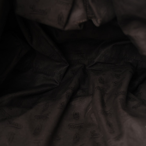 - Interior: Fabric interior with zipper and patch pockets