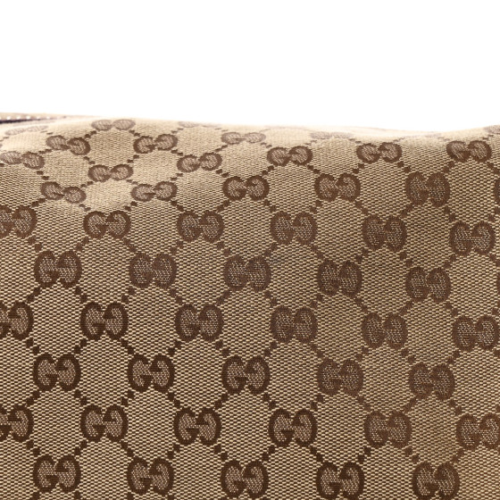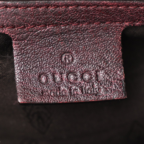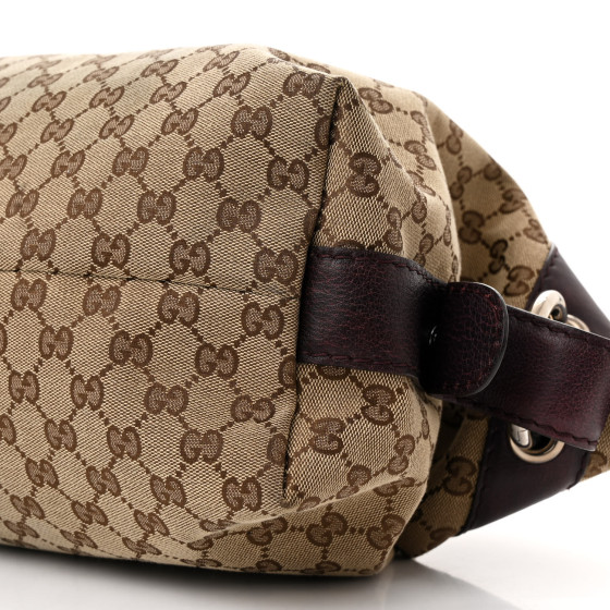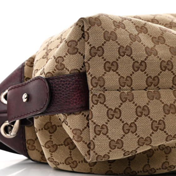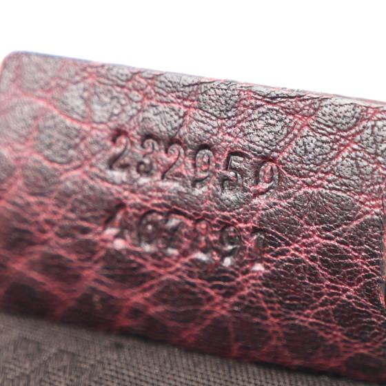 - Materials: Gucci GG monogram canvas with deep bordeaux red leather trim