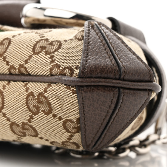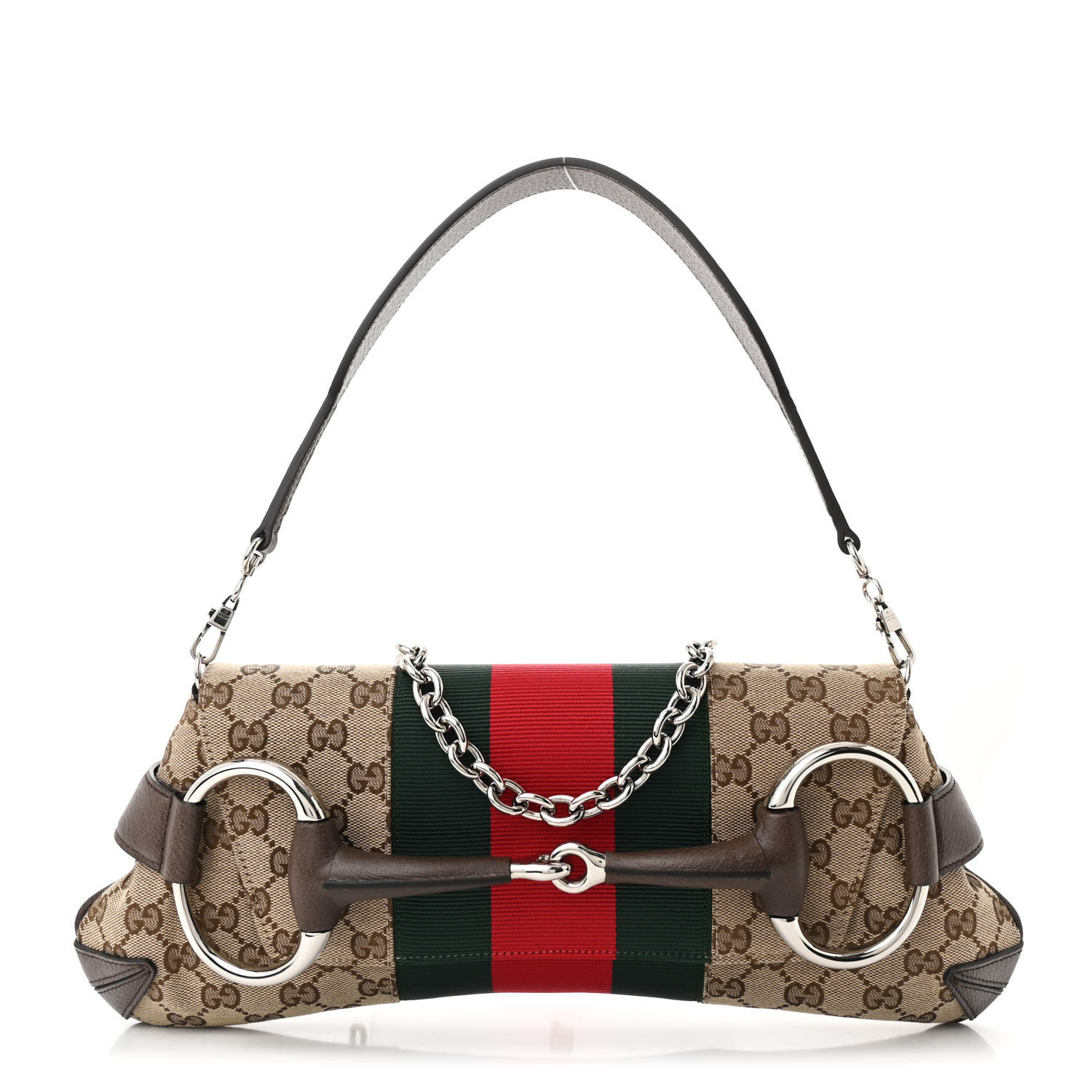 Monogram Textured Dollar Calfskin Heavy Grosgrain Web Medium Maxi Horsebit Chain Shoulder Bag Beige Ebony New Acero