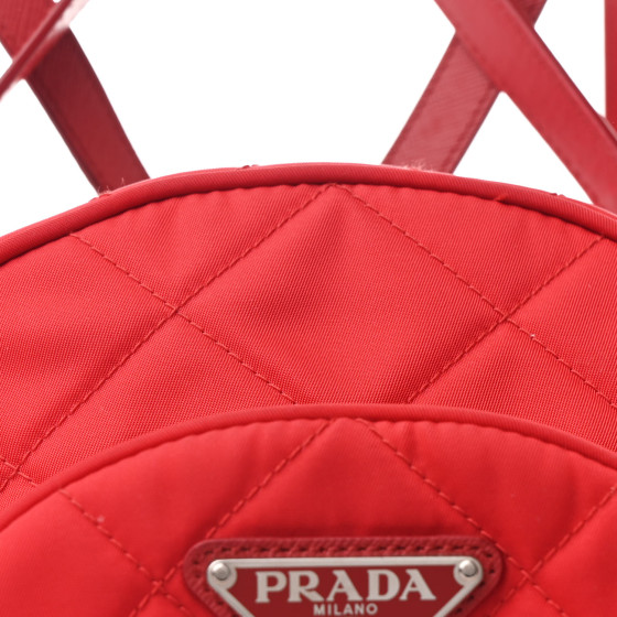 - Materials: Red diamond-quilted tessuto nylon