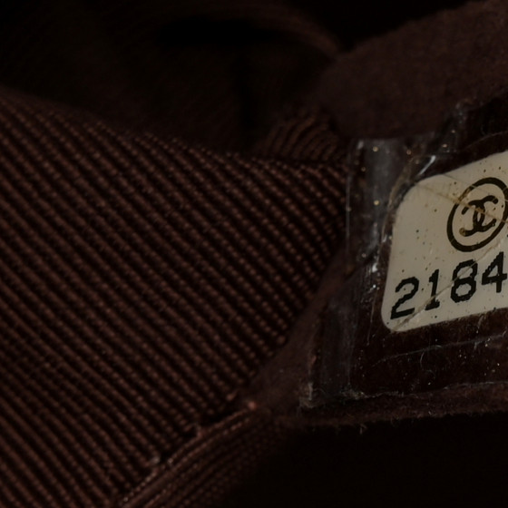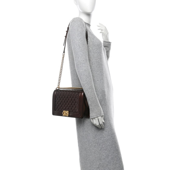 • Materials: Dark red diamond-quilted patent leather with a peripheral linear-quilted trim