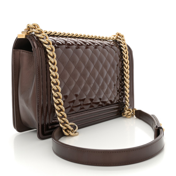 Patent Calfskin New Medium Boy Flap Dark Red