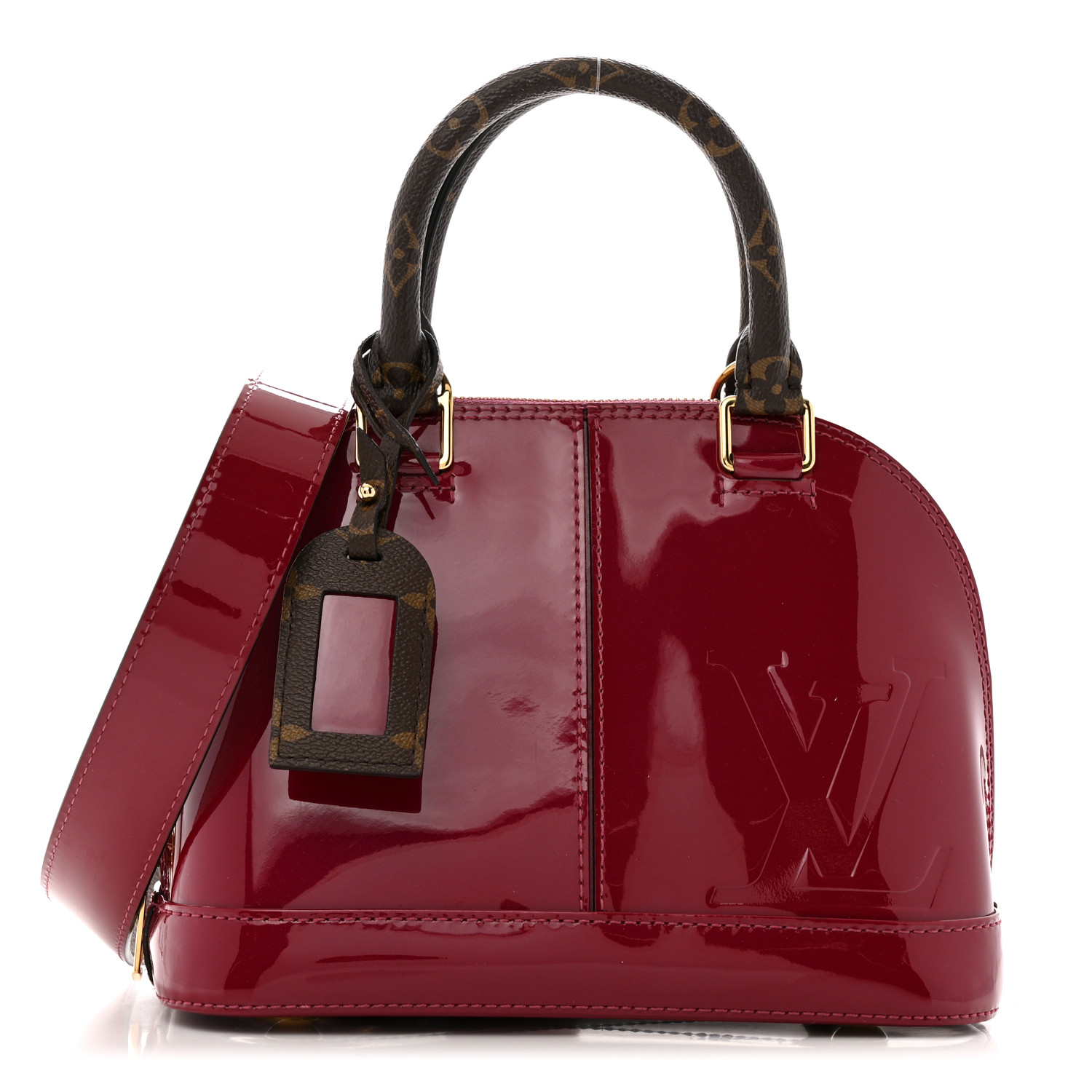 - Materials: Louis Vuitton vernis patent leather in dark pink