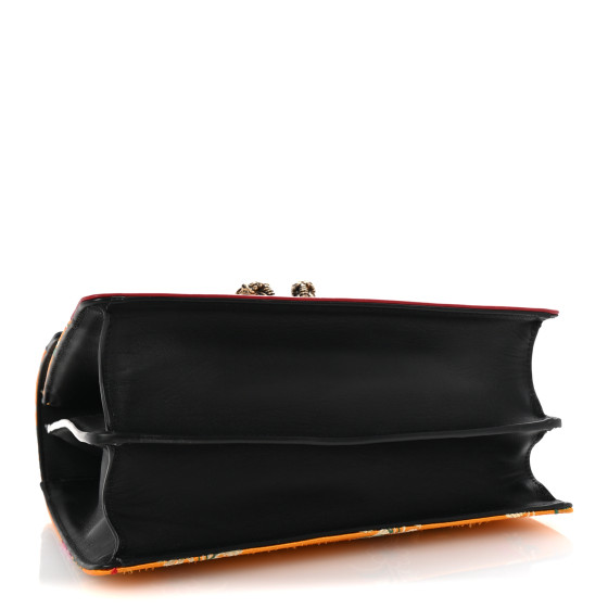 Satin Calfskin Bamboo Web Tokyo Print Medium Dionysus Top Handle Bag Giallo Multicolor Blue Agata Hibiscus Red