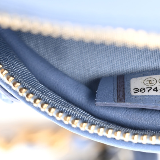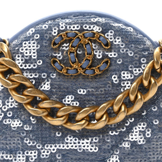 Sequin Chanel 19 Round Clutch With Chain Light Blue