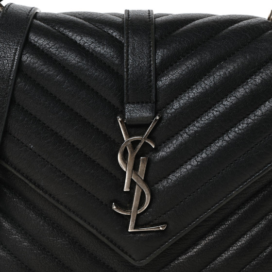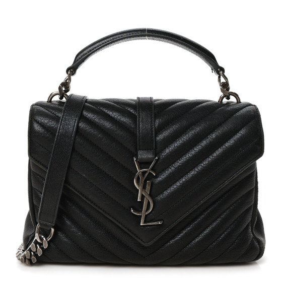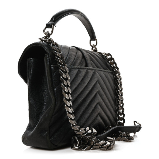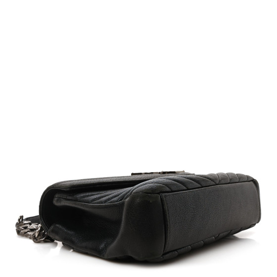 Sheepskin Matelasse Chevron Monogram Medium College Bag Black