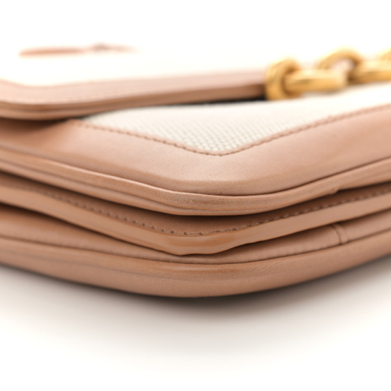 Smooth Calfskin Cotton Canvas Le Maillon Satchel Natural Beige