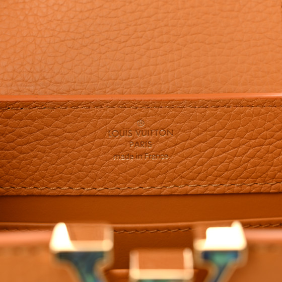 Inside, the Taurillon Mini Capucines Safran Imperial Replica features a soft textile lining with a flat zipped pocket to secure small valuables. A removable pouch doubles as a compact clutch or extra organizer. The open compartment provides flexible space for essentials, and side adjusters let you cinch the silhouette for a sleeker profile or loosen it for added room. Lightweight yet spacious, this piece fits your wallet, phone, keys, makeup case, a tablet or small laptop, and daily accessories with ease.