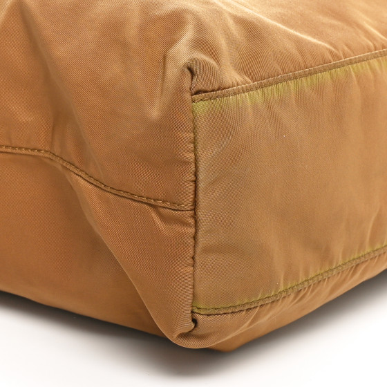 - Strap/Handles: Brown saffiano handles and a PRADA logo