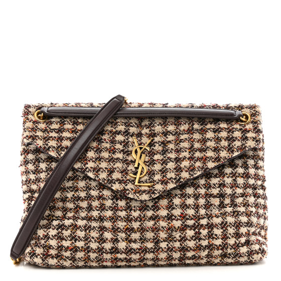 Tweed Matelasse Medium Loulou Monogram Chain Satchel Beige Multicolor
