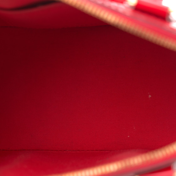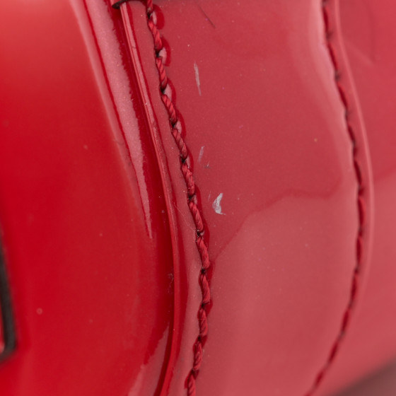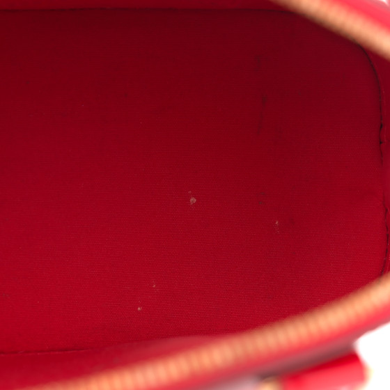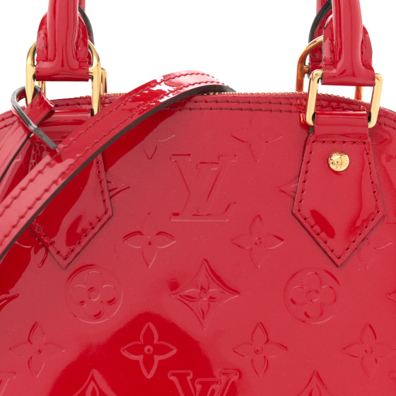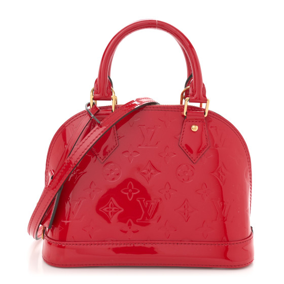 - Materials: Louis Vuitton monogram embossed Vernis patent leather in red