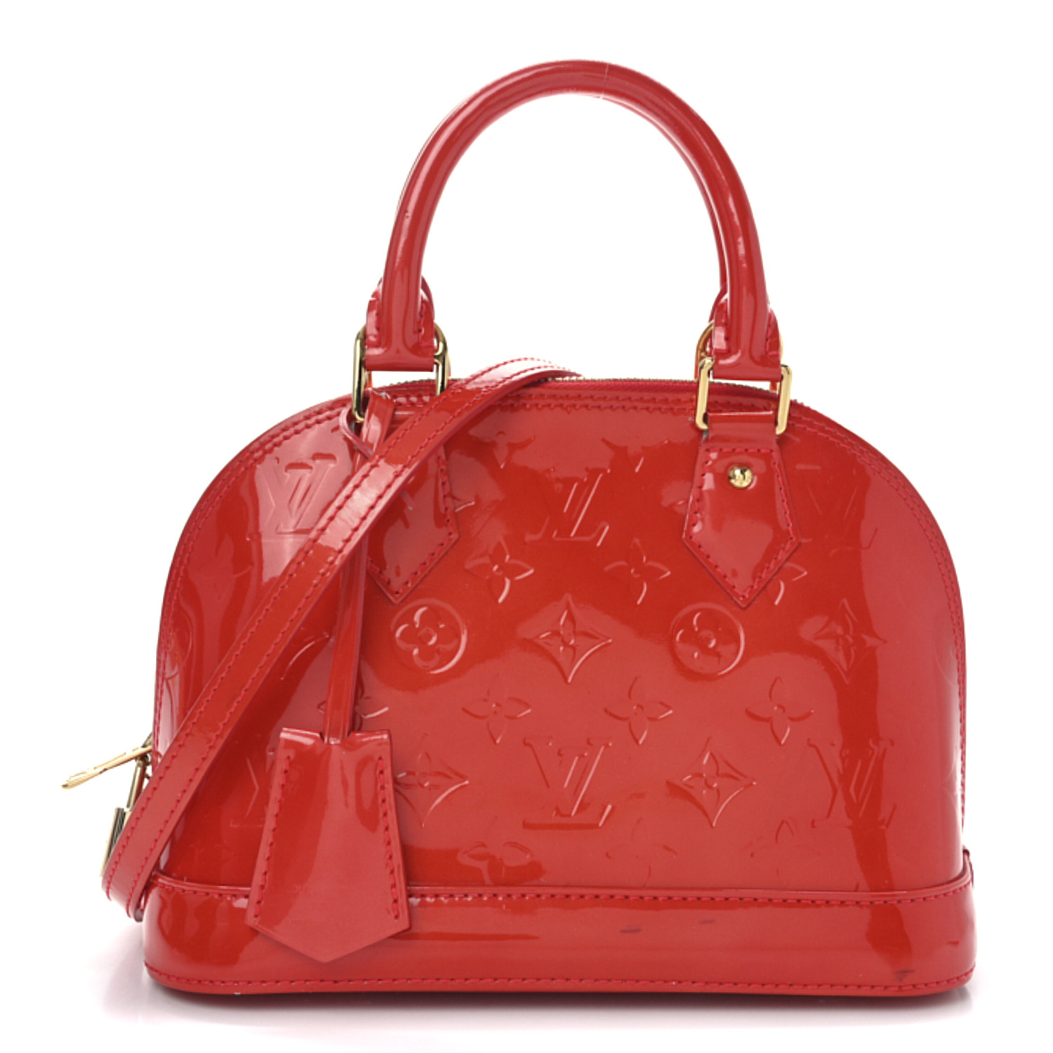 - Materials: Louis Vuitton monogram embossed vernis patent leather in red