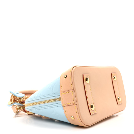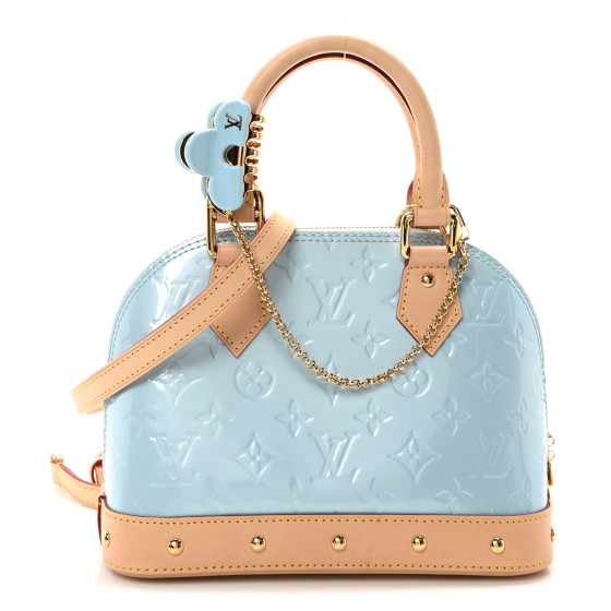 - Materials: Louis Vuitton monogram embossed Vernis patent leather in blue with gold undertones