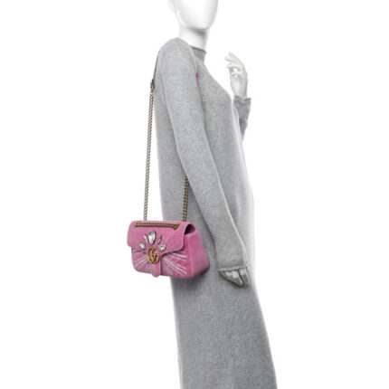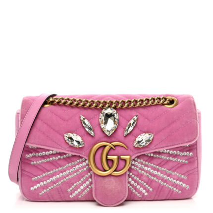 Velvet Matelasse Marquise Crystals Embroidered Small GG Marmont Shoulder Bag Malva