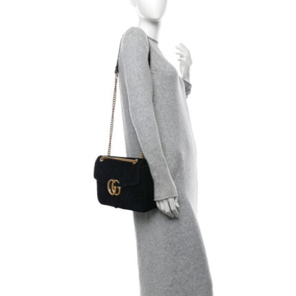 Velvet Matelasse Medium GG Marmont Shoulder Bag Black