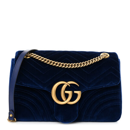 Velvet Matelasse Medium GG Marmont Shoulder Bag Cobalt Blue
