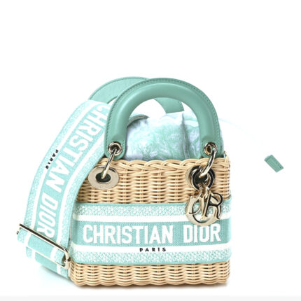 Wicker Oblique Mini Lady Dior Bag Aquamarina